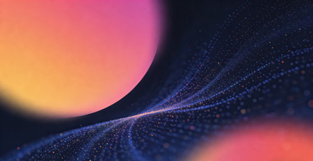 Flowing digital particles create a captivating abstract backdrop for data visualization