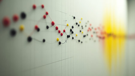 A visually engaging workspace featuring colorful push pins and sticky notes on graph paper, illustrating data representation and enhancing creative organization for projects.