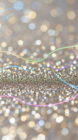 Lights showing soft focus background of shimmering gold glitter with blurred bokeh lights and delicate pastel colored light streaks keywords: glitter, bokeh,...