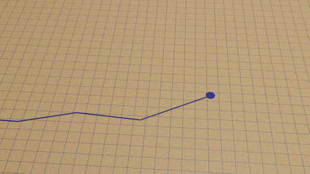 Stock price chart on the notebook page. Growth and decline dynamics. 3d render.