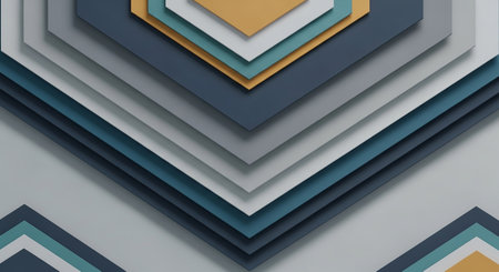 Abstract background of layered geometric shapes in shades of blue, gray, yellow, and white.