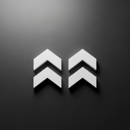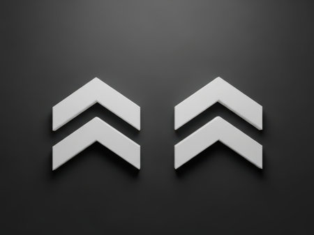 A retro inspired 3D chevron arrow pointing upwards. This bold graphic element adds a touch of vintage style to your designs. perfect for websites. presentations. or social media.