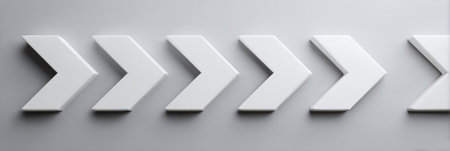 Decorative white arrow tiles are aligned in a row on a smooth gray surface, showing a contemporary style ideal for home renovation and interior decoration.