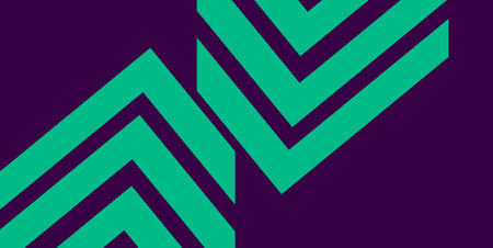 A bold geometric background with zigzag patterns in shades of teal, orange, and white, forming sharp, angular shapes that create a dynamic, high-energy look.