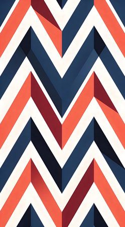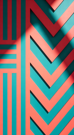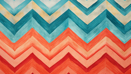 A creative digital illustration depicting Seamless commercial digital art with chevron zigzag patterns in teal and coral, bold geometric stripes, bright studio lighting, energetic modern mood high resolution. This AI-generated artwork features unique visual elements suitable for various commercial and editorial applications. AI-generated illustration.