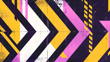 Striking chevron pattern background with bold colors, adding modern twist.
