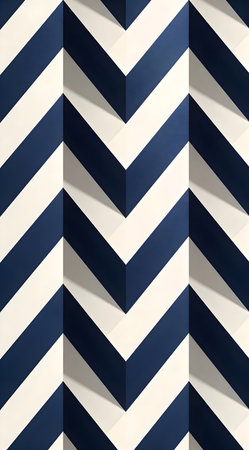 A creative digital illustration depicting Seamless geometric chevron pattern professional digital art in navy and pearl white, zigzag precision, layered shadows, crisp lighting, dynamic commercial versatility. This AI-generated artwork features unique visual elements suitable for various commercial and editorial applications. AI-generated illustration.