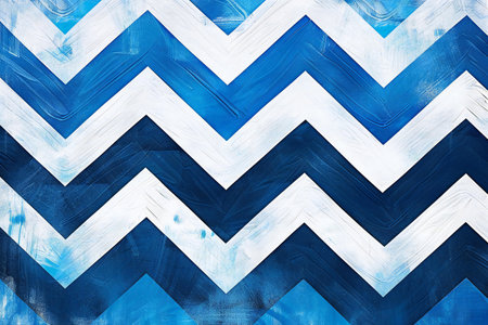Blue and white chevron pattern on the wall, abstract background