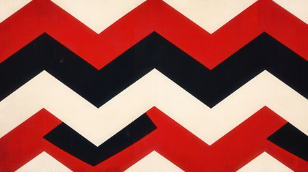 Red and black zigzag pattern on a white wall background.