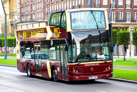 BUDAPEST, HUNGARY - JULY 27, 2014: City sightseeing doubledecker bus UNVI Urbis in the city street.