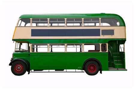 Vintage green double decker bus, isolated on white.