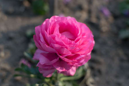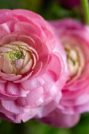 Bright vivid pink buttercup flower macro shot, tender spring flowers closeup