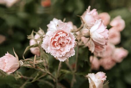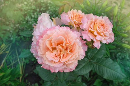 Beautiful pink roses in the garden, close-up. Nature background