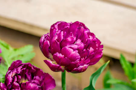 Pink tulip flower with blurred background close up. Flowering tulipa flowers with bokeh