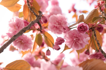 Beautiful blooming sakura outdoors on sunny spring day, closeup