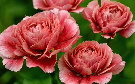 Beautiful ranunculus flowers at the garden. Selective focus. Floral background for seasonal cards, blogs, posters and web design