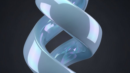 Pearlescent showing iridescent pearlescent twisted dna helix shape with reflective surfaces and subtle color shifts. resolution