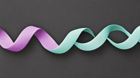 3D render of a simple wavy ribbon in purple and teal gradients on a black background, in a minimalist style. --chaos 30 --ar 16:9 --v 6.1 Job ID: 88e6650b-eb3c-4d51-a001-c0dd3031e493