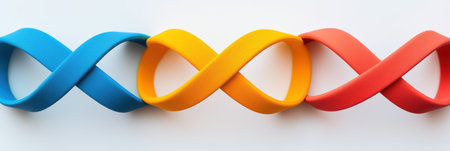 Three vibrant fitness bands intersect at sharp angles on a white surface, highlighting a minimalist aesthetic while promoting health and activity.