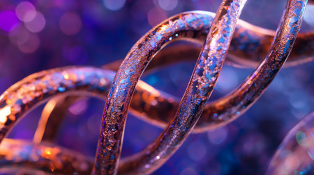 Intricate copper and silver dna double helix against a futuristic purple and blue background
