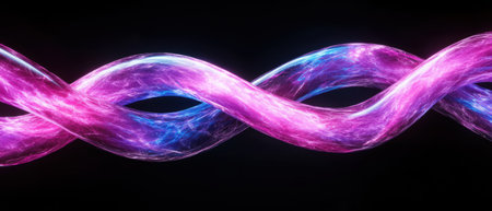 Abstract glowing purple and blue plasma energy strands.