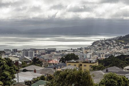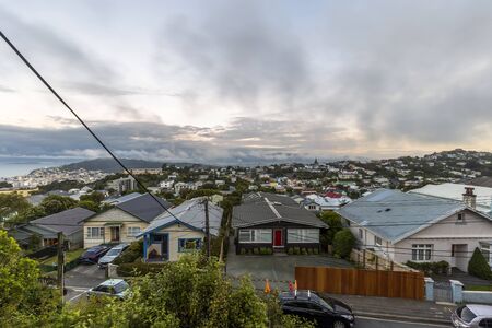 Wellington, New Zealand - April 13, 2020: Panoramic view of houses on Brooklyn suburb in Wellington, New Zealand