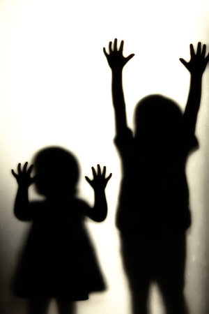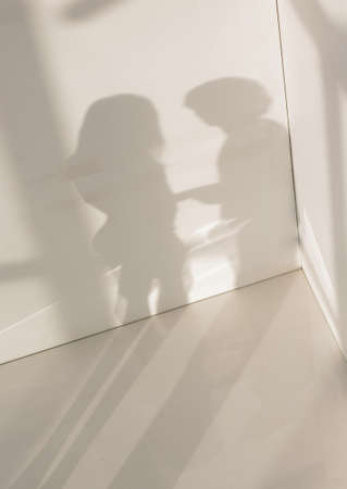shadows of the faces of two children look in different directions, brother and sister. silhouette - mystery. trust and keep secrets. Other people's thoughts are a secret to others