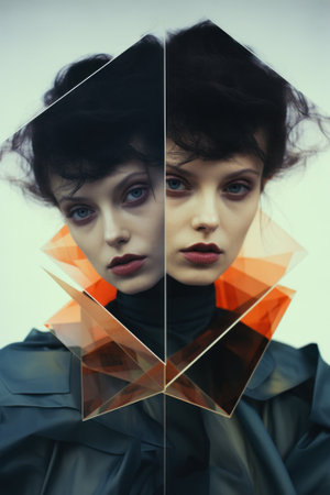 this doppelganger hybrid portrait photograph showcases a mesmerizing fusion of human and mythical creature features, blending eerie similarity with fantastical elements, capturing the essence of a mystical being with an uncanny resemblance to its human counterpart, perfect for fans of fantasy art and mythology enthusiasts. ai generated
