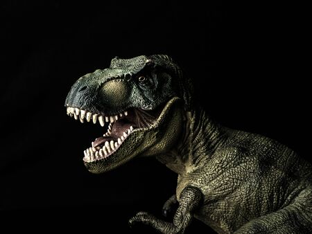 Tyrannosaurus Rex Dinosaur Head on a black background. Studio shot.