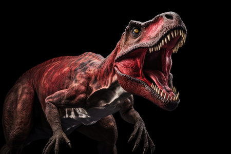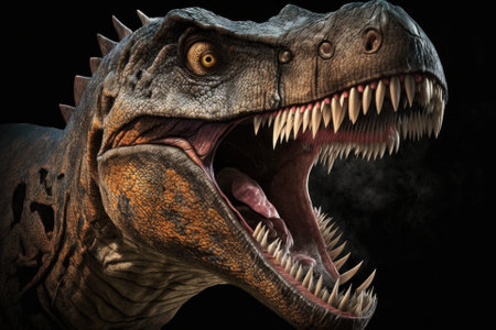 Tyrannosaurus Rex Dinosaur Head on Black Background, Close Up