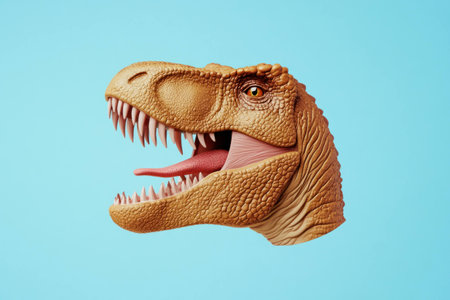 Realistic dinosaur head against a vibrant blue background, showcasing sharp teeth and expressive features, ideal for creative and educational projects