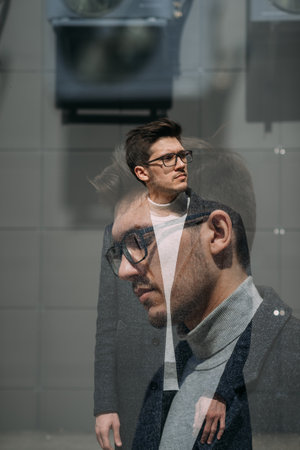 portrait of crazy man with mental disorders and split personality. concept of suppressing emotions and external calmness