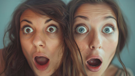 Two women with their eyes open and one has a mouth, AI