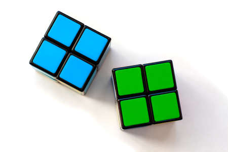 Elche, Spain. May 26, 2016: Two rubik cubes on a background of white