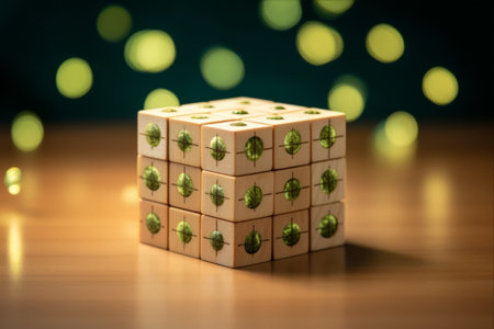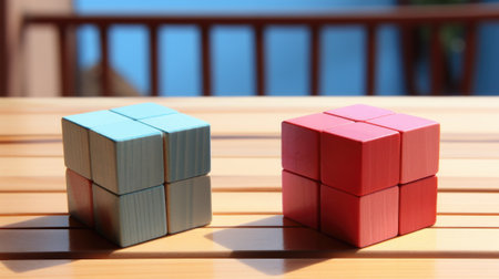 A couple of wooden blocks sitting on top of a wooden table. Generative AI image.