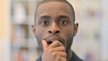 Close up of Shocked Young African Man Looking at the Camera