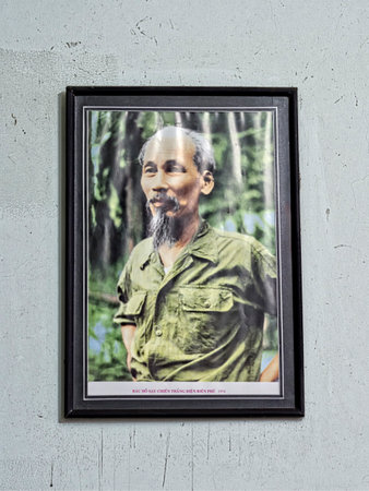 hue, vietnam - january 1, 2017: portrait of ho chi minh in the home in hue, vietnam