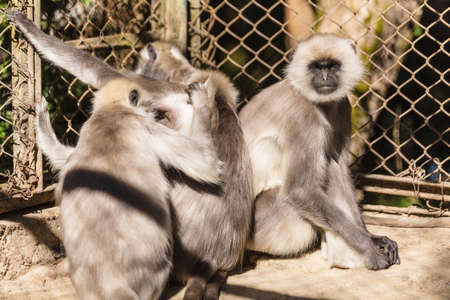 Black Faced Langur Monkeys in the cage in Padmaja Naidu Himalayan Zoological Park at Darjeeling, India.