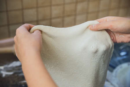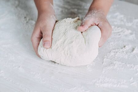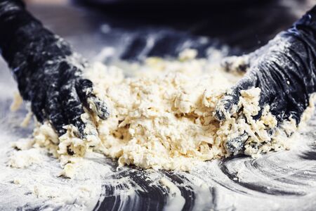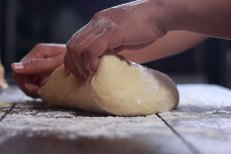 Homemade making dough of pizza, pierogi. Preparation dough for cooking