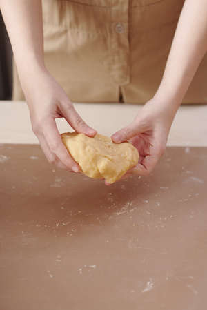 Close-up image of woman kneading dough of traditional Chinese pastry for mid autumn festival