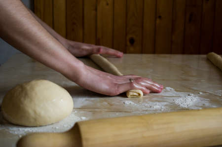 Woman's hands roll the dough. Protection Symbol, heat comfort.