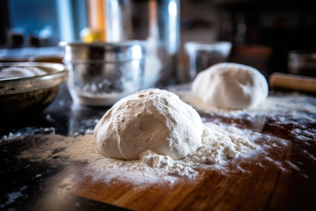 artisan bread dough with a dusting of flour, ready for baking, created with generative ai