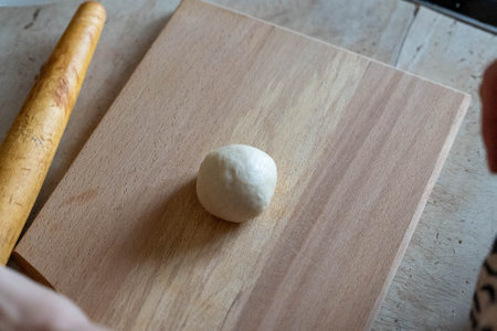 Preparing bread dough on the kitchen counter to bake flatbread.