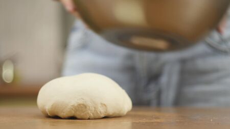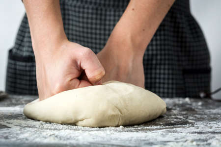 Preparing dough for white bread, rolls, pizza. Yeast dough made from wheat flour.