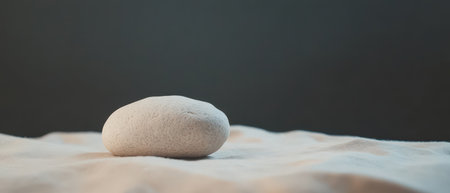 A smooth rounded stone sits quietly on a soft neutral fabric illuminated by gentle diffused light creating a calming atmosphere.