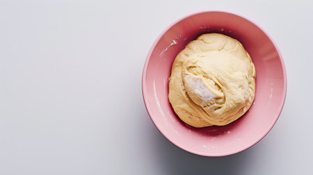 Bread dough placed in a pink bowl during the baking process