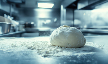 Dough on a floured countertop, industrial kitchen