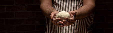 Cook holding a yeast dough in the kitchen