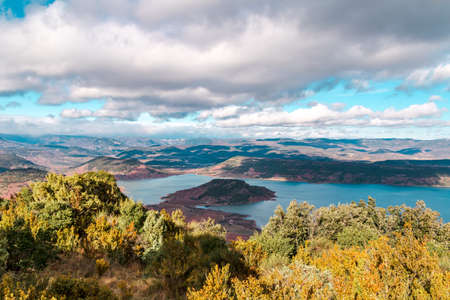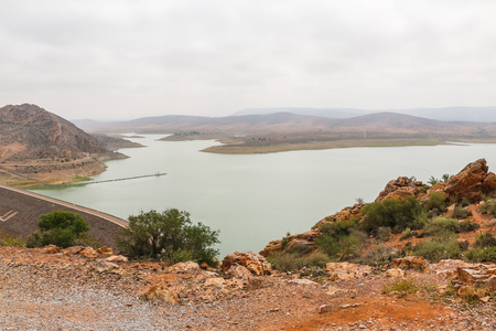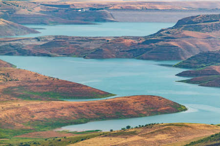Yellow mountains, laike and beautiful panoramic view in Moricco