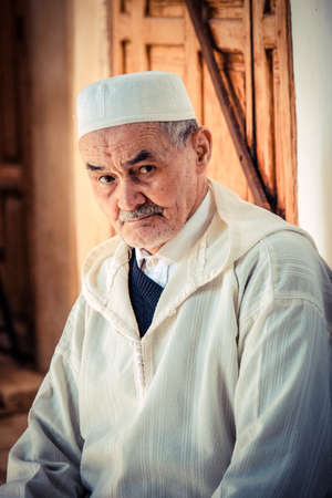 MARRAKESCH, MOROCCO, JUNE 2016: old moroccan in traditional clothes on the city streets